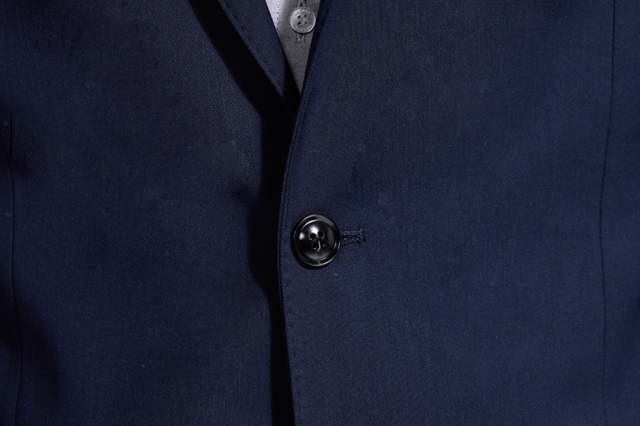 | 款名: | 定制西装-藏蓝色65%涤纶粘胶混纺平驳头两粒扣无开衩商务西装上衣 | |||