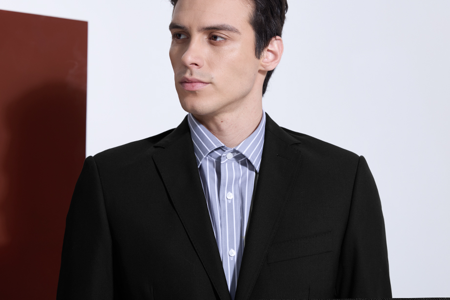 时尚窄平驳领设计,衣襟自然贴体,前胸立体挺括。
