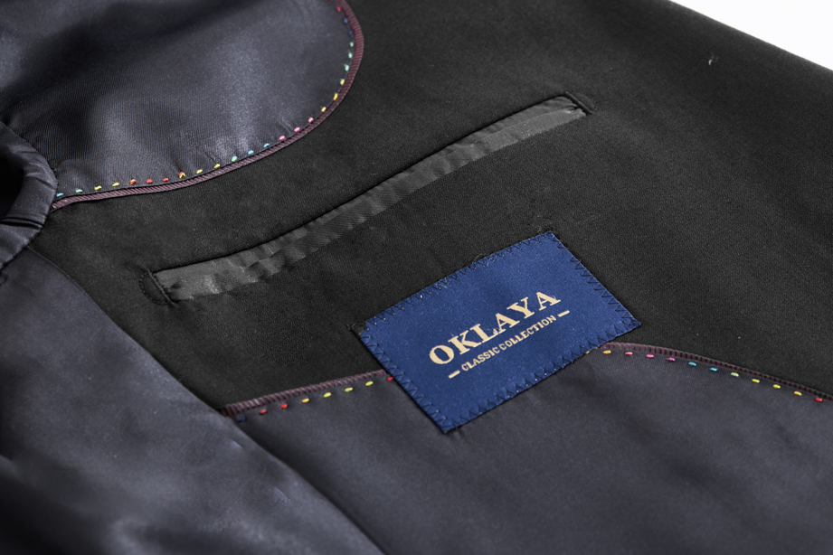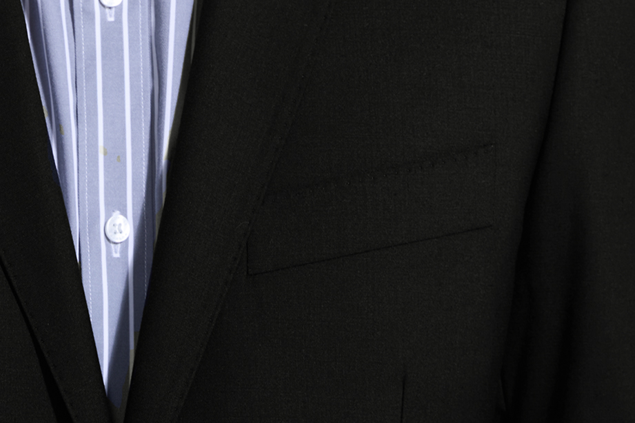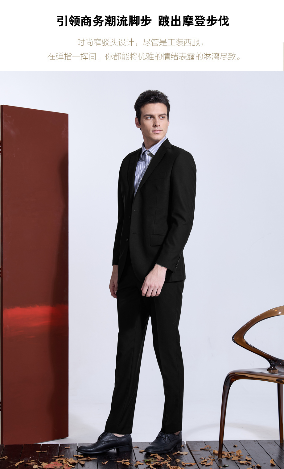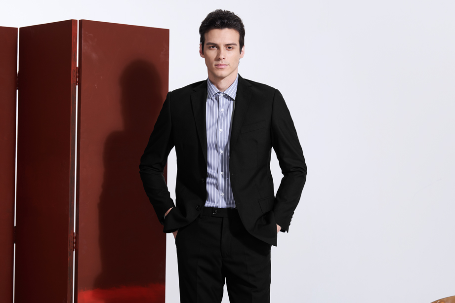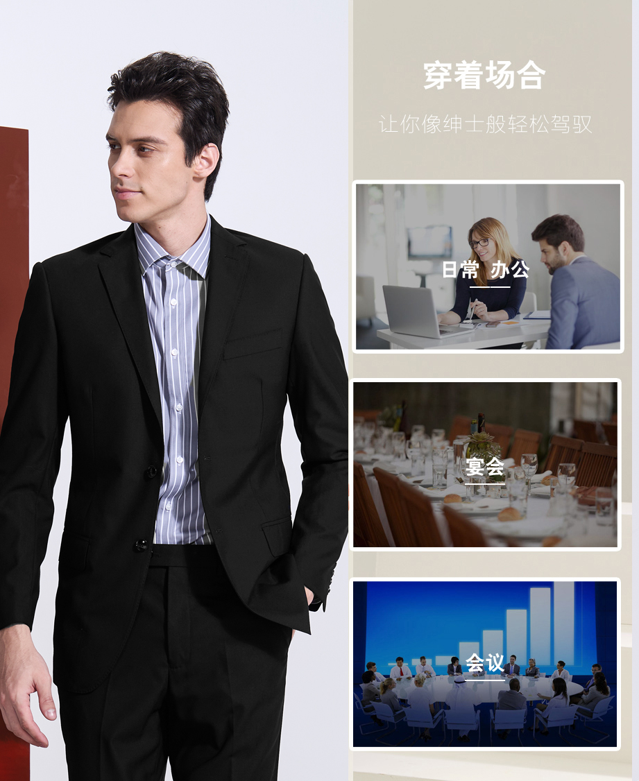 | 款名: | 定制西装-黑色100%绵羊毛贡丝锦两粒扣平驳领商务西装上衣 | |||