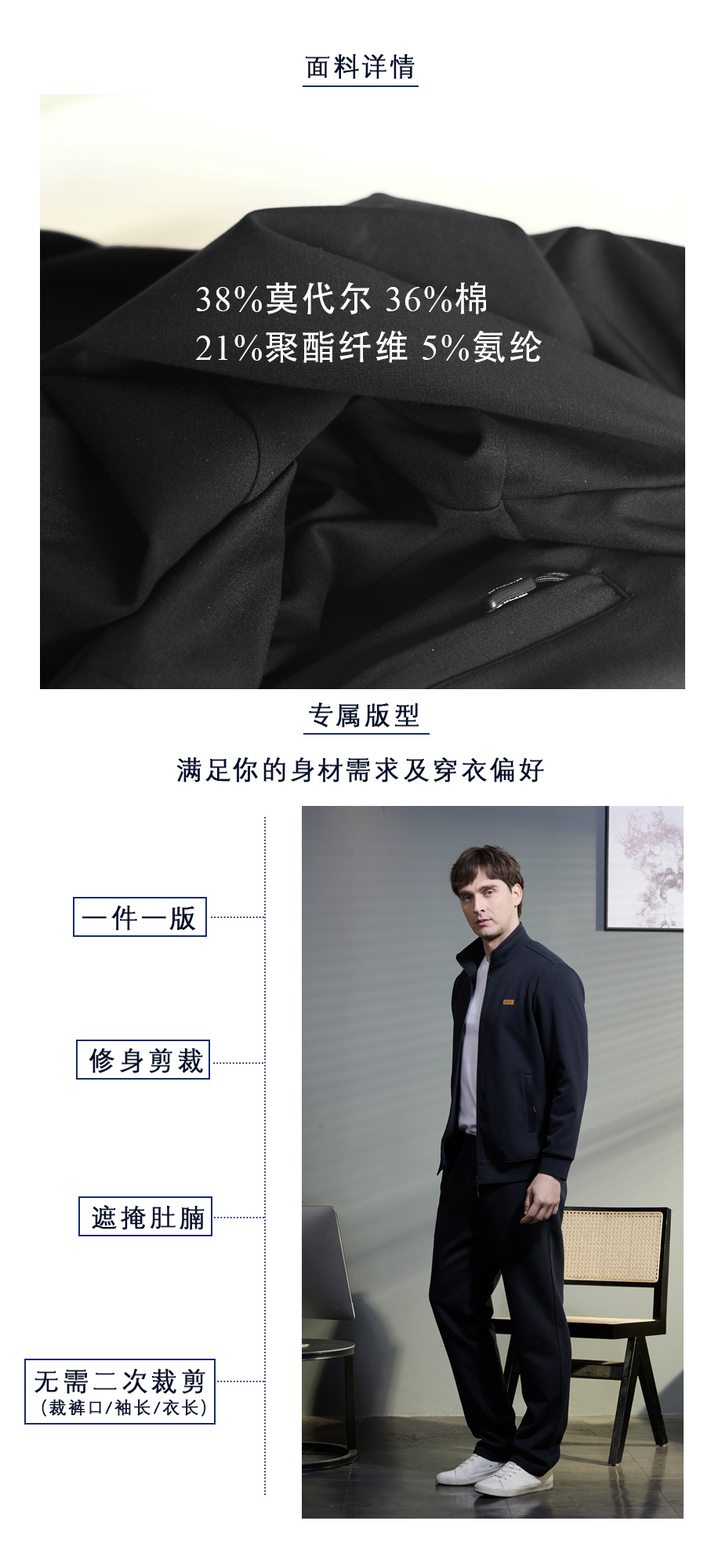 | 面料: | 38%莫代尔 36%棉 21%聚酯纤维 5%氨纶 | |||