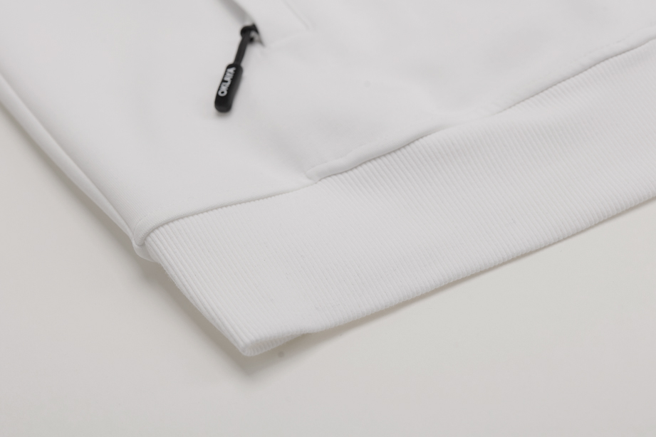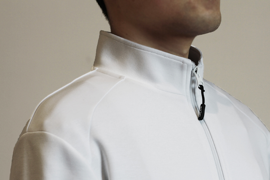 白色38%莫代尔棉混纺(前肩有分割)立领春夏运动装上衣 |
