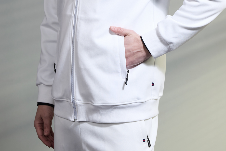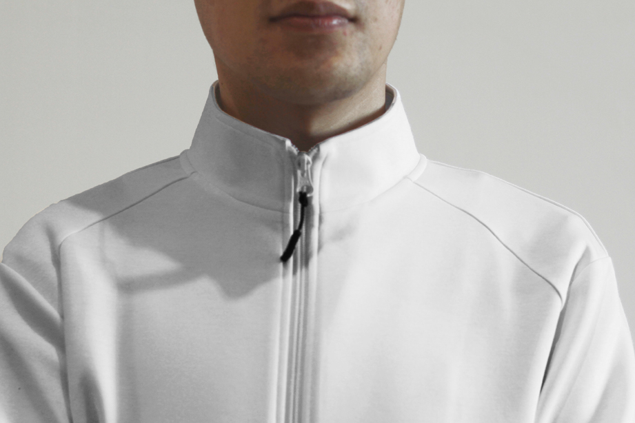 | 款名: | 白色38%莫代尔棉混纺(前肩有分割)立领春夏运动装上衣 | |||