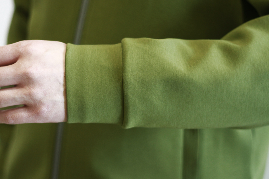 袖头使用简洁的顺色针织罗纹,舒适又有型。