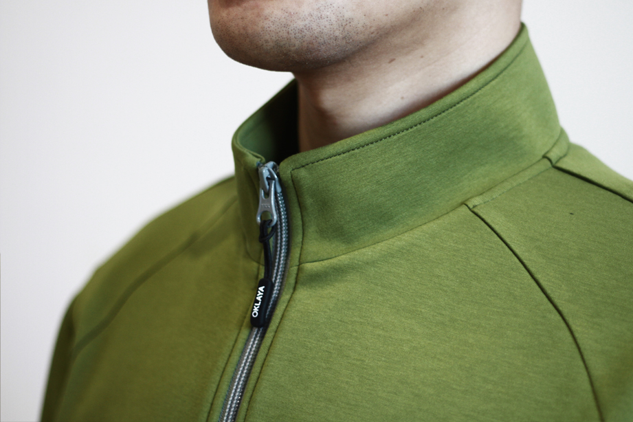 苔藓绿38%莫代尔棉混纺(前肩有分割)立领春夏运动装上衣 |